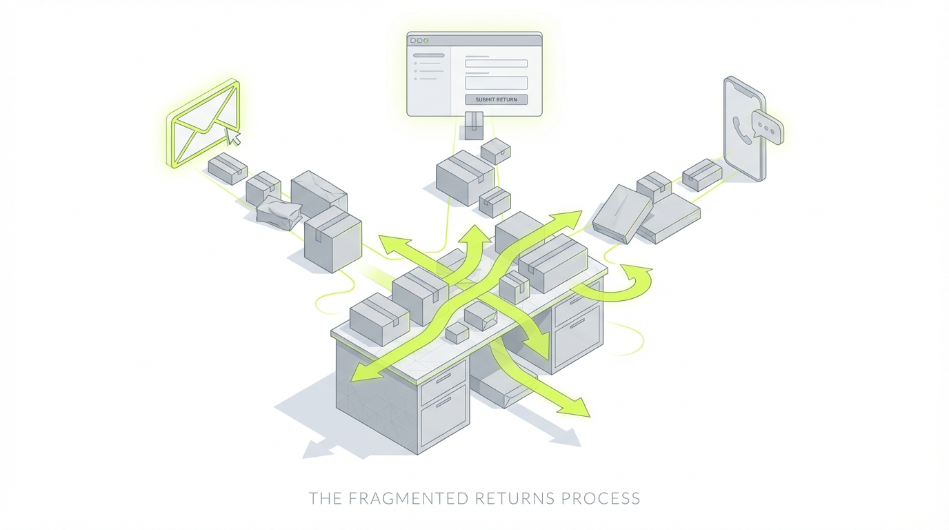 Der Retourenprozess eines E-Commerce-Shops war über drei Kanäle verteilt – Website, Bestellbestätigungs-E-Mail und Shopify Self-Service-Portal – jeder mit leicht abweichenden Anweisungen. Endkunden wussten nicht, welchen Weg sie nehmen sollten, und nutzten alle drei gleichzeitig.